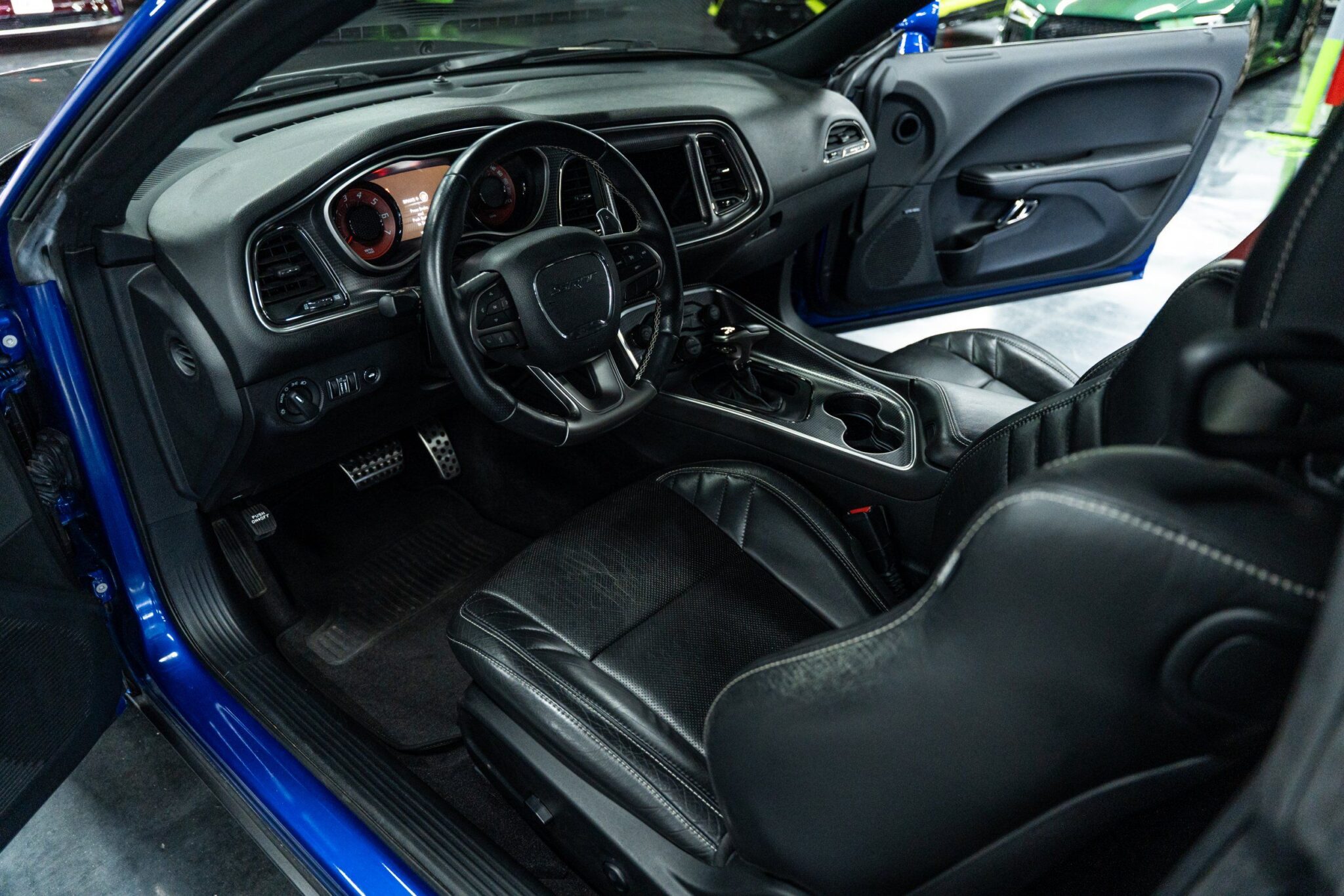 Unleash the beast with the 2019 Dodge Challenger SRT Hellcat Redeye, a true powerhouse on wheels. This stunning coupe in Indigo Blue is not just about looks; it’s built to thrill with its HEMI 6.2L Supercharged V8 engine delivering an astonishing 950+ horsepower . Slide into luxury with Laguna leather seats adorned with the iconic Hellcat logo, while red seat belts add a touch of flair. The Plus Package enhances your drive with dark engine-turned interior accents and ventilated front seats for ultimate comfort.