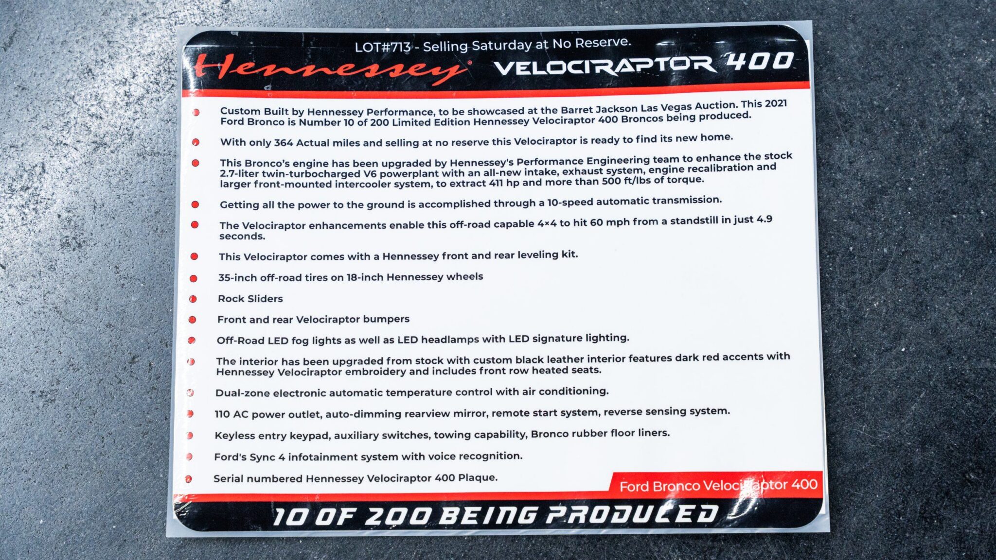 Ford Bronco Hennessey Velociraptor 400 #10 of 200 Produced
